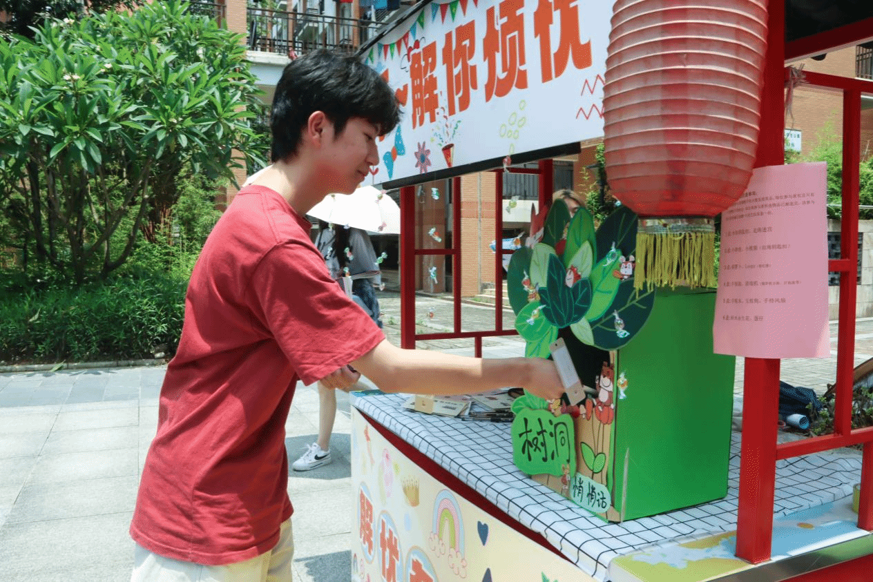 廣西建院5月27日訊(設備與環境學院 文/廖紅媛 圖/黃瑩靜) 近日,學校的創意創新集市變成了一片心靈的港灣,設備與環境學院以“紙短情長,從‘心’開始”為主題,成功舉辦了2024年5·25心理健康教育系列活動之“解憂雜貨鋪”?;顒舆^程中,學生們將自己匿名寫下的心事、困惑,或是對未來期望的信箋投入了象征著傾聽與理解的“解憂樹洞”中。隨后,他們領取了一張寓意深刻的解憂書簽,或是翻開《答案之書》任意一頁,尋找心靈的答案。...
