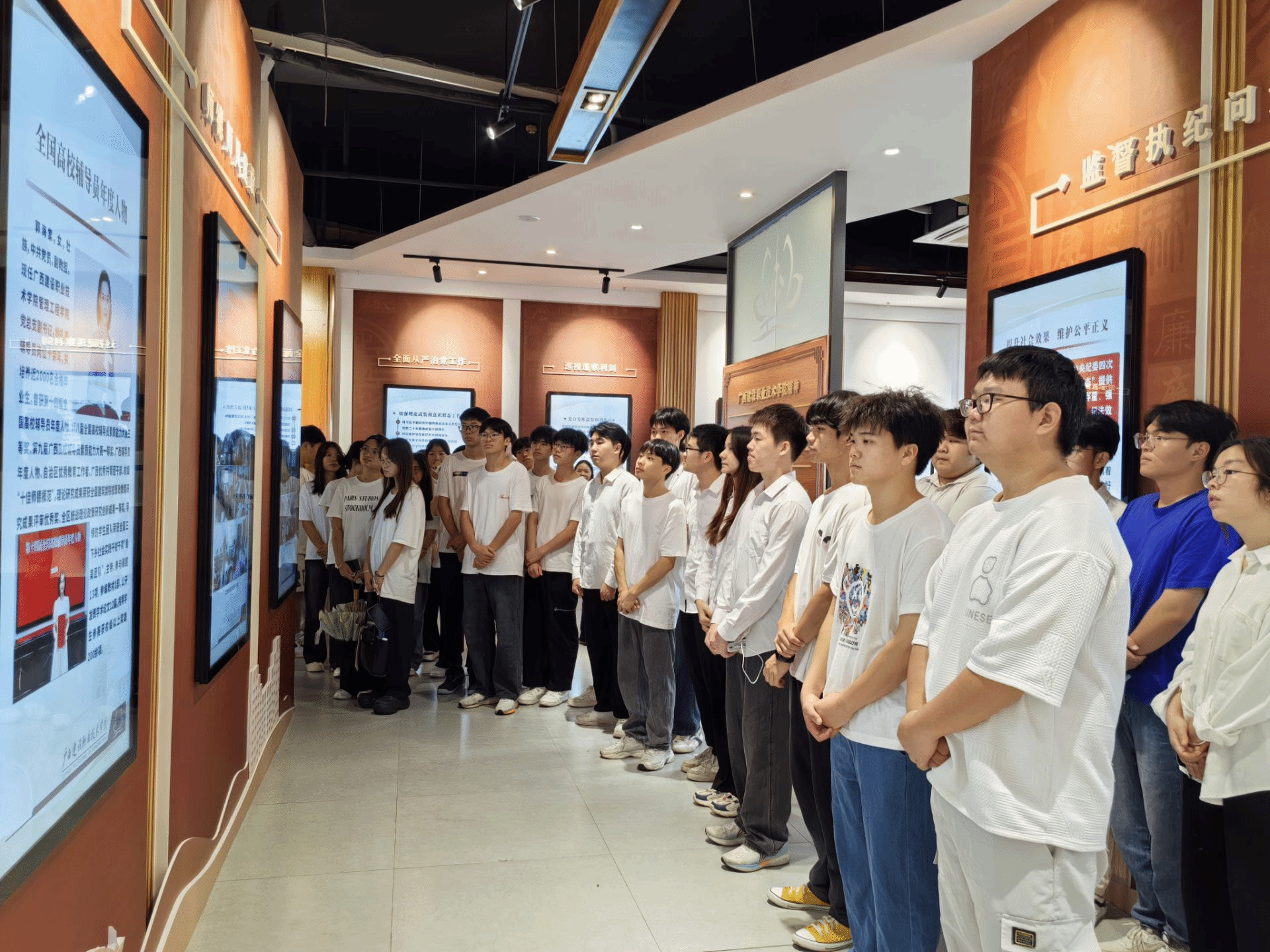 廣西建院7月3日訊(土木工程學院 文/石明成 圖/潘秀鎮)7月2日,土木工程學院團總支組織第三期“青馬工程”基礎班暨團學骨干班全體學員前往學校廉政教育基地開展“青春挺膺,廉潔筑夢”廉潔教育主題團日活動,共110名師生參與活動。參觀學校廉政教育基地在講解員的引導下,師生們依次參觀主題展廳六大板塊內容學習,通過墻報、標語、視頻等媒介的展示,一個個鮮活真實的案例、一張張生動詳實的圖片、一行行觸目驚心的文字、一張張后悔莫及的面容,...