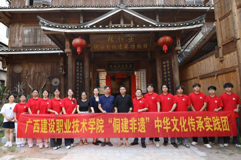廣西建院7月20日訊(市政與交通學院 文/黃華 圖/傅俊濤)廣西建設職業技術學院“侗建非遺”中華文化傳承團于7月13日—7月19日到柳州市三江侗族自治縣程陽八寨開展暑期“三下鄉”社會實踐活動。此次活動以“探尋侗族木構建筑,弘揚中華傳統文化”為主題,旨在通過實踐活動,深入了解侗族木構建筑營造技藝及其文化內涵,推動傳統建筑保護與再生利用,傳承和弘揚中華優秀傳統文化。 “侗建非遺”傳承團合影侗族木構建筑無需一顆釘子,僅憑榫卯結構便能緊密連接,...