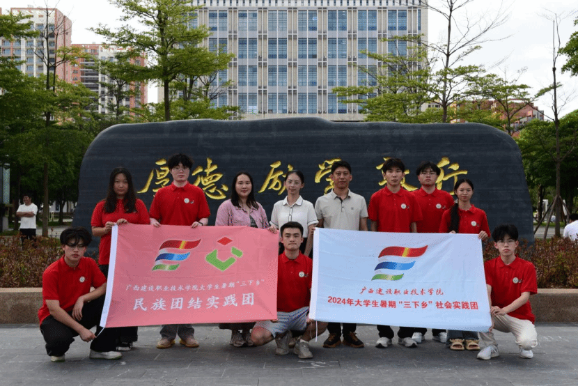 廣西建院8月14日訊(土木工程學院 韋東余)為引導當代大學生爭做民族團結的簇擁者、傳播者和實踐者,近日,廣西建設職業技術學院“筑建同心桂鄉”民族團結實踐團赴河池市2縣5村開展以民族團結為主線,傳承紅色基因和鄉村振興為支線,“五個一”實踐任務為重要抓手的大學生“三下鄉”社會實踐活動。 實踐團出征前合影傳習民族歷史 ?筑就民族信仰實踐團先后到東蘭縣革命烈士紀念塔、韋國清故居、蘇托紅軍渡參觀學習,緬懷革命先烈,重溫入黨誓詞;...