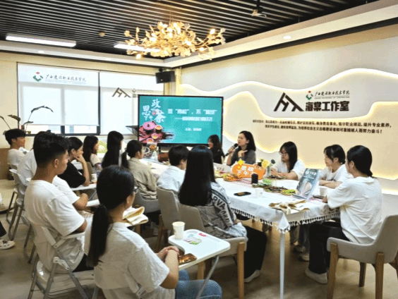 廣西建院10月15日訊(管理工程學院 封炫妃 梁甜甜)平衡生活,學會放松。10月15日,管理工程學院在海棠工作室舉辦以“放‘青松’,不‘蕉綠’——解碼情緒價值經濟”為主題的思政下午茶活動。學院黨總支副書記郭海棠老師與來自全校7個二級學院的22位同學面對面交流。活動上,主講人郭海棠老師與同學們圍繞“你焦慮嗎”“你因何焦慮”“你怎樣化解焦慮”等論題展開交流。同學們結合自身經歷,講述在學業、工作、生活、人際等方面的困惑和煩惱,...