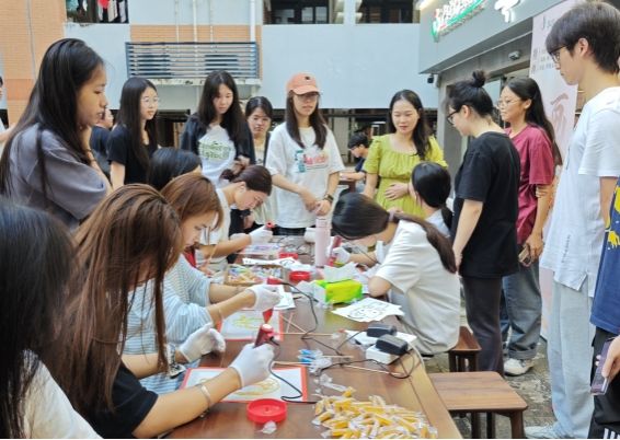 廣西建院10月18日訊(管理工程學院 顏彥婷 李晶晶)非遺文化進校園,悠悠“糖”韻沁人心。10月18日,管理工程學院在“一站式”學生社區茶藝文化傳習基地開展“糖藝茶韻,甜夢非遺”非遺糖畫制作活動。 活動現場活動中,老師首先向同學們介紹了糖畫的來源與歷史,并簡單介紹了糖畫的操作步驟;接著,師生以糖為墨,在操作板上來回勾勒,一氣呵成畫出各種各樣可愛的造型;最后,再粘上竹簽,一副副栩栩如生的糖畫作品就展現在了大家面前。...