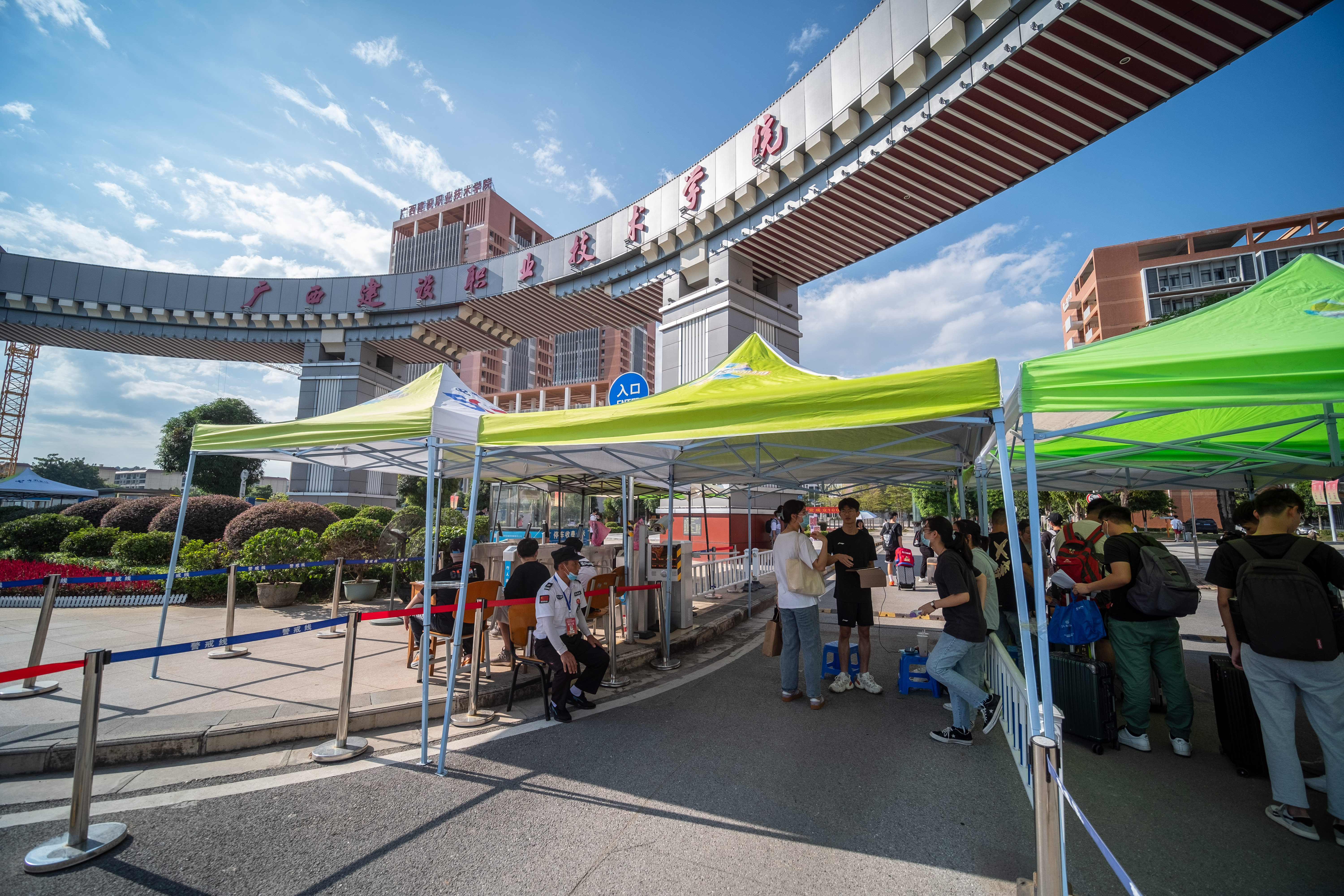 廣西建院9月4日訊(文/記者團 袁怡鈺 圖/賓士俊 李癸昌)朗朗金秋,丹桂飄香。9月4日,我校20級學子迎來返校復課的日子。緊張忙碌的開學季,疫情防控依然是學校的重點工作,從開學前的定時報備,到報到當日的各...