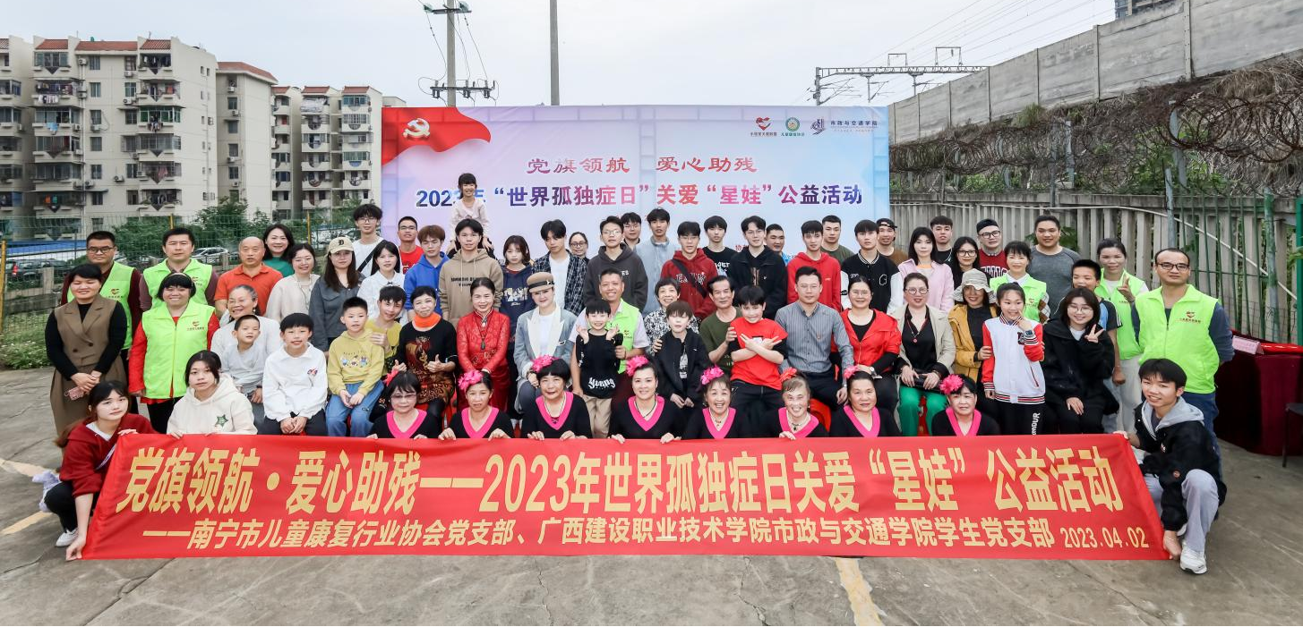 廣西建院4月3日訊(市政與交通學院 楊鑠)4月2日上午,由市政與交通學院學生黨支部、黨建工作室聯合南寧市兒童康復行業協會黨支部共同主辦的黨旗領航·愛心助殘——2023年“世界孤獨癥日”關愛“星娃”公益活動在...