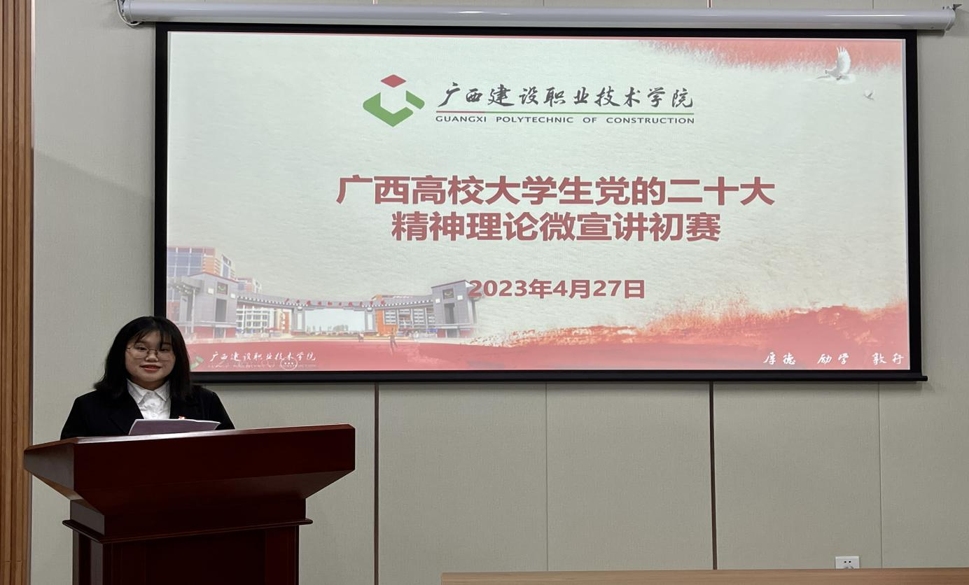 廣西建院4月28日訊(黨委學(xué)生工作部 文/周曉卉 圖/莫蕓瑕)為認(rèn)真貫徹落實(shí)《自治區(qū)黨委教育工委辦公室 自治區(qū)教育廳辦公室關(guān)于開(kāi)展廣西高校大學(xué)生黨的二十大精神理論微宣講比賽的通知》(桂教工委辦〔2023〕59 ...